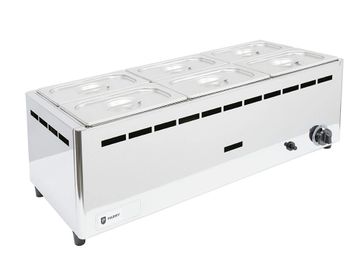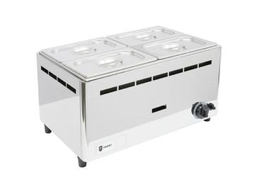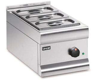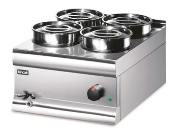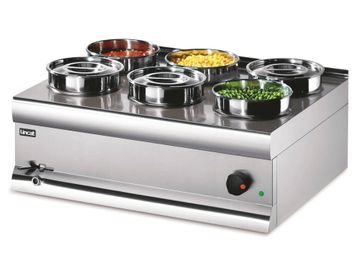 Bain marie units generally come in a standard GN container format or round pot set up. Standard gastronorm units will accommodate up to 2/1GN and multiples of such as 4 x 1/2 GN, 8 x 1/4 GN. Although these are a very simple catering appliance they will be a vital part of any commercial kitchen.