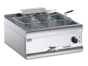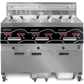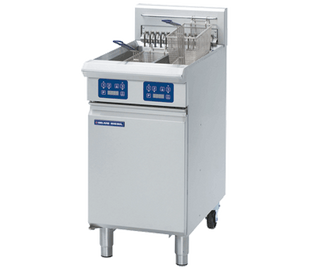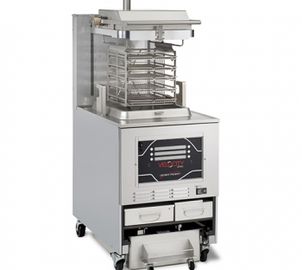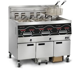 GVE series. Built-in manual filtration, heavy-duty stainless steel vats: full vat, split vat or combination, 40 available cooking programs, heavy duty basket rest removes easily for cleaning, hinged elements make vat clean-out quick and easy, idle and melt modes: reduced energy consumption, extended oil life.